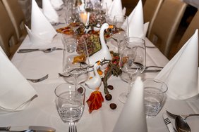 Irgendwie kann man zwar nicht genug vom Golfspielen bekommen und das diesjährige Turnier um die Martinsgans am 8. November mit 40 Teilnehmenden hat auch nochmal so richtig Spaß gemacht, dennoch aber ist es jetzt an der Zeit eine Winterpause einzulegen und vielleicht auch noch die ein oder andere Reise in wärmere Gefilde zu unternehmen, bevor es sodann an Ostern nächsten Jahres wieder so richtig los geht. Nach viereinhalb bis fünf Stunden Spielzeit unter herbstlich, feuchtkalten Verhältnissen im Format Chapman-Vierer der „Martinsgans“ freute man sich auch diesmal am Samstag vor St. Martin auf das gemütlich, warme Clubhaus nach der Runde und das traditionelle Gansessen im Kreise seiner Clubfreunde. Spielführer Dr. Nic Zeitler führte zusammen mit Präsidentin Dorothea Christ durch die Siegerehrung und gerne wurden die wunderbar verpackten Sachpreise für die Sieger entgegengenommen. Die von fleißigen Händen rund um Frau Danny Winter und Frau Dagmar Vey gestaltete Tischdekoration wurde dabei ebenfalls sehr bewundert. Kulinarisch war der Abend wieder einmal ein Hochgenuss und Lovely Singh mit Team hatten alles getan, die Golfer zu verwöhnen – vielen Dank dafür!